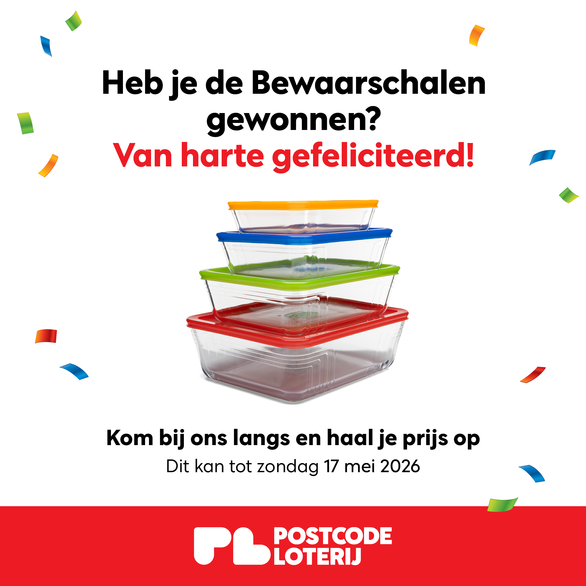 De Postcode Loterij heeft ook banners beschikbaar gesteld, die u kunt gebruiken voor uw Social Media. Per afhaalperiode zijn er per prijs 2 beschikbaar. Deze kunt u hier downloaden.